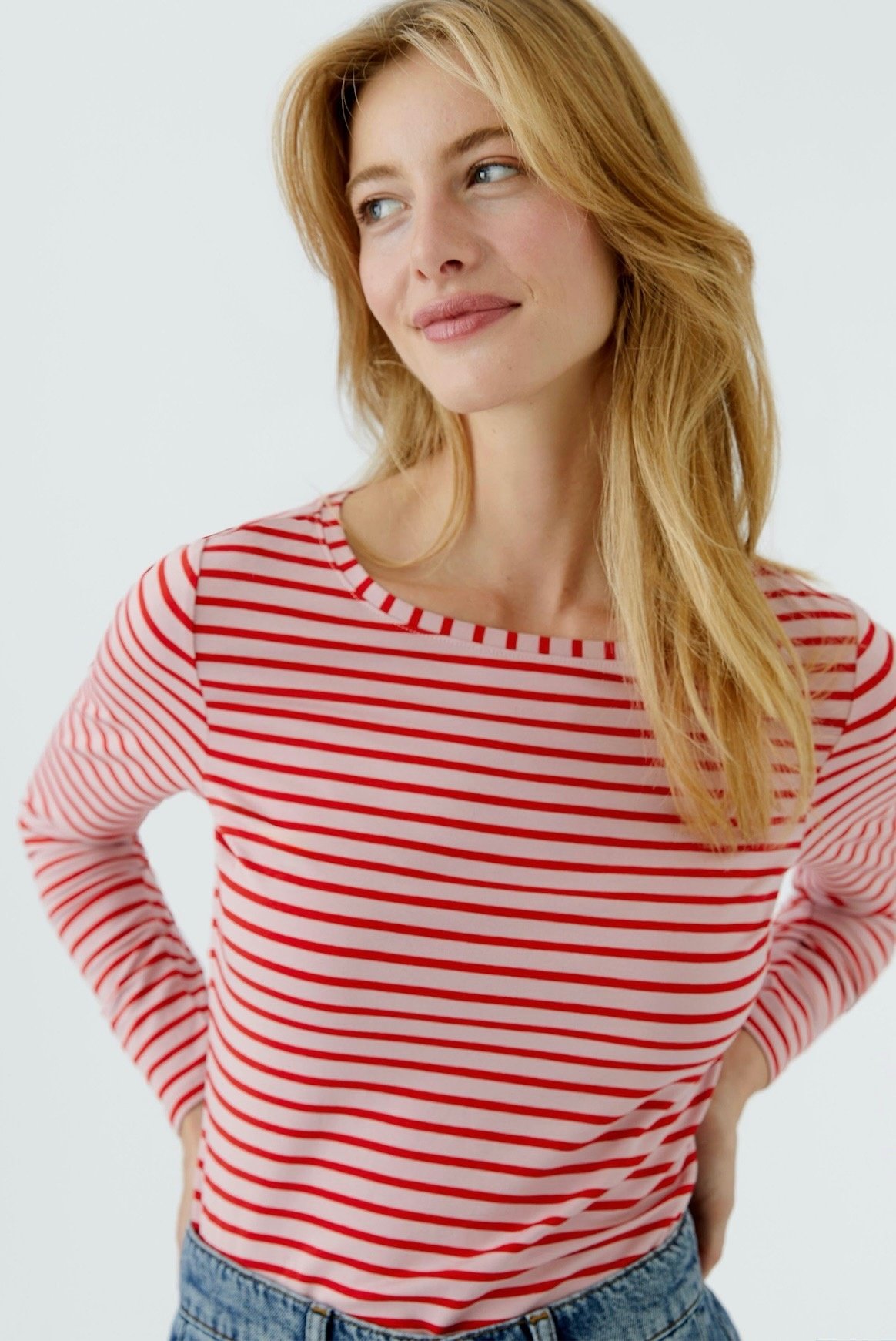 CHANDAIL RAYURES ROSE/ROUGE
